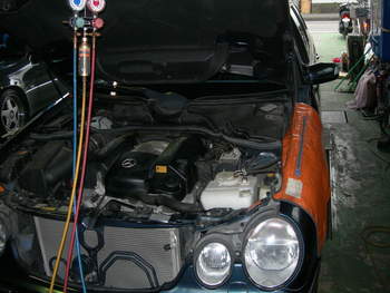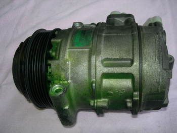 エアコン修理(ベンツ W210編) 2008年7月10日エアコン修理アオキ電装 1カ月程でエアコン効かなくなってしまうとのことで入庫しました。 原因はエアコンコンプレッサーでした。 コンプレッサーシャフトシールからガス漏れのようです。
