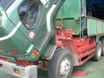 オルタネーター修理(UD ダンプ) 2008年9月6日電装系修理アオキ電装 バッテリーあがりで入庫しました。 ちょっとわかり難いですがV型エンジンですので オルタネーターは真中の真上についています。 仕事車ですので動かなくては商売になりません。 急いで修理します。しばしお待ちを(汗)