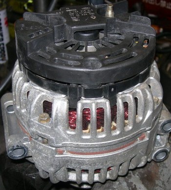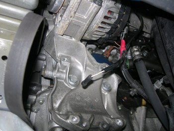 エアコンコンプレッサー脱着し、オルタネーター取り外しスペースをつくります。