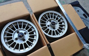 AE86トヨタ純正 イントラホイール! 2014年5月7日AE86関係アオキ電装 新車当時ホイールアーチモールと195/60R14タイヤと セットでオプションだったイントラ社製14インチ! ホイールキャップ(TOYOTAマーク付)は なかなか見かけませんネ~( `・ω・) GW中にご自宅の倉庫整理で、見つけて頂きました。 ありがたく使わせて頂きます。(_ _)