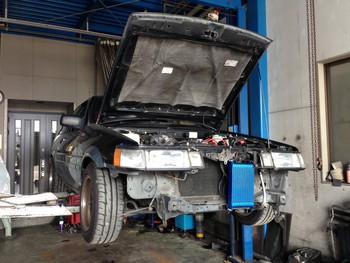 いつものようにフロントバンパー脱着します。