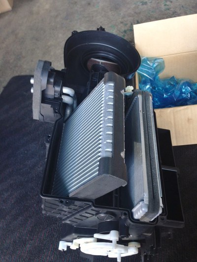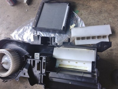 ワゴンR MH23S エアコン修理! 2015年10月22日エアコン修理アオキ電装 ガス漏れ修理のご依頼頂きました~ インパネ脱着し~ クーラー&ヒーター一体型ユニット分解! エバポレーターからガス漏れを 確認致しました。 右側 ヒーターコア! 左側 新品エバポレーターです! 中間画像撮り忘れてしまいましたが、 インパネ取り付け完成致しました。 平成20年くらいのワゴンR パレット系に 続出している故障です。 リコールも出ている位なのですが この車は残念ながら対象外でした。 ご依頼ありがとうございました!