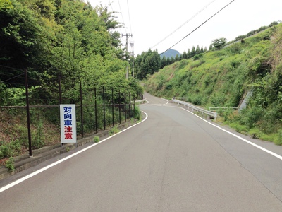 この対向車注意の標識後みちなりに左折してトンネルをくぐり