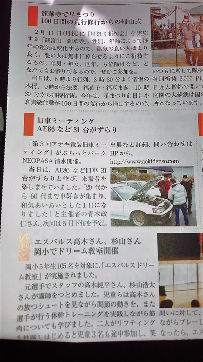 掲載されました! 2019年2月8日車の電気修理日記, その他アオキ電装 地元のフリーペーパー紙(静岡市清水区 由比 蒲原 含む)に 先日の旧車ミーティングが載りました。 清水ベイプレスさま、ありがとうございます。 友人たちから見たよ~と連絡たくさん頂きました。 次回も頑張ります!m(__)m