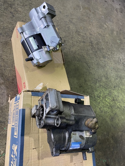 ビークロス セルモーター交換! 2020年2月13日車の電気修理日記, 電装系修理アオキ電装 マフラーフロントパイプのボルトが 錆びついて緩める事が出来ず大変でしたが 何とか取り外し、セルモーターを摘出しました。 プランジャー接点が不良だけの様でしたが 車歴も23年超えですので ここはスッキリとデンソー純正リビルトに 交換致しました。 マフラーガスケットや取り付けボルトは 全て新品交換致しました。 これでエンジン掛からない症状は 解消しました。 ご依頼ありがとうございました。