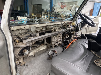 キャンター FE648 ヒータコア交換! 2025年11月20日車の電気修理日記, 電装系修理アオキ電装 急に寒くなりましたね~ ヒーター効きが悪いとのことで、 ヒーターコア交換します。 インパネ脱着しました。 長いフレームが邪魔してヒーターユニットが 取り外せないため全バラしました、、、 ご依頼ありがとうございます。